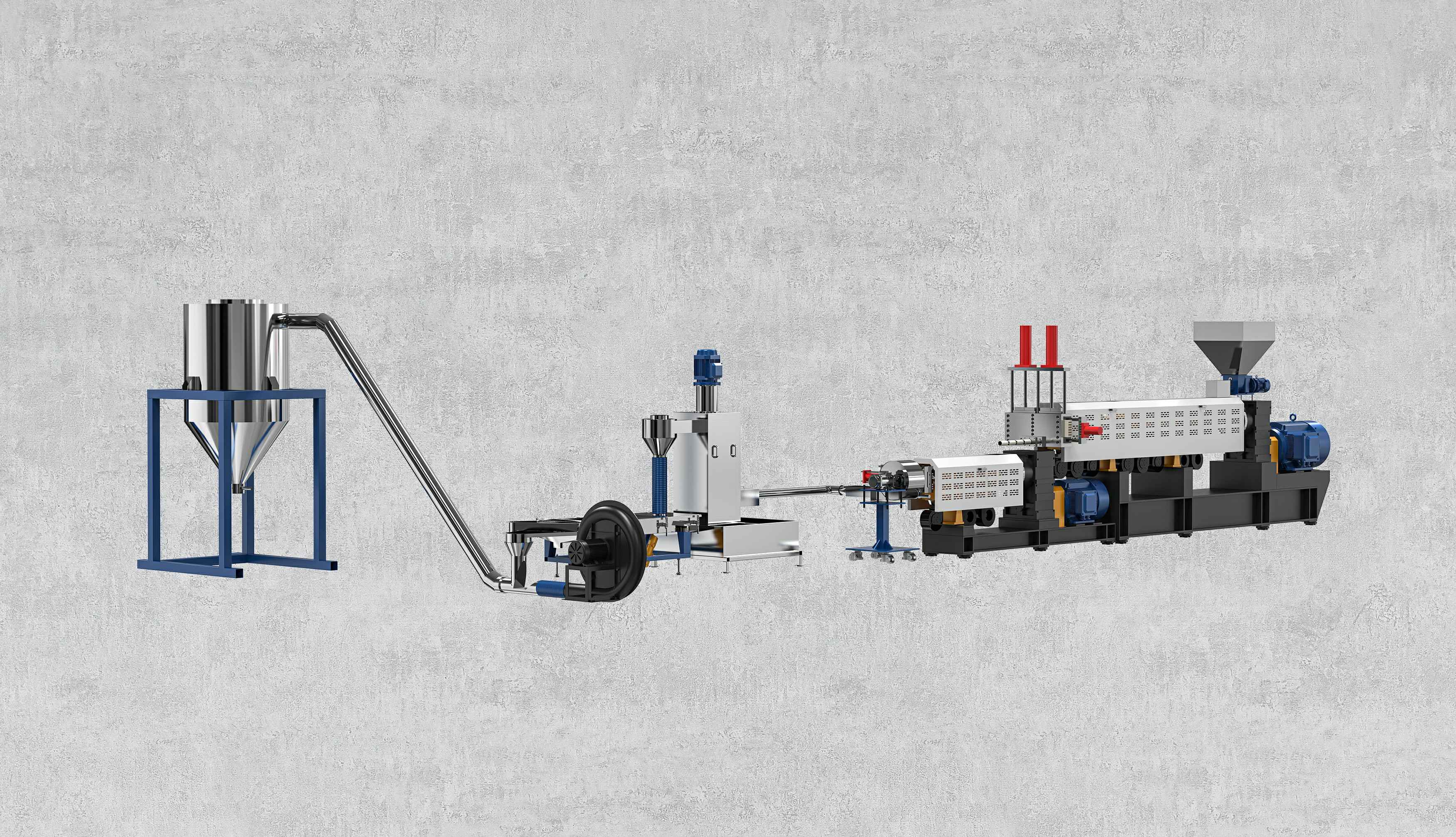 1.主喂料機(jī) | 2.雙螺桿擠出機(jī) | 3.單螺桿擠出機(jī) |