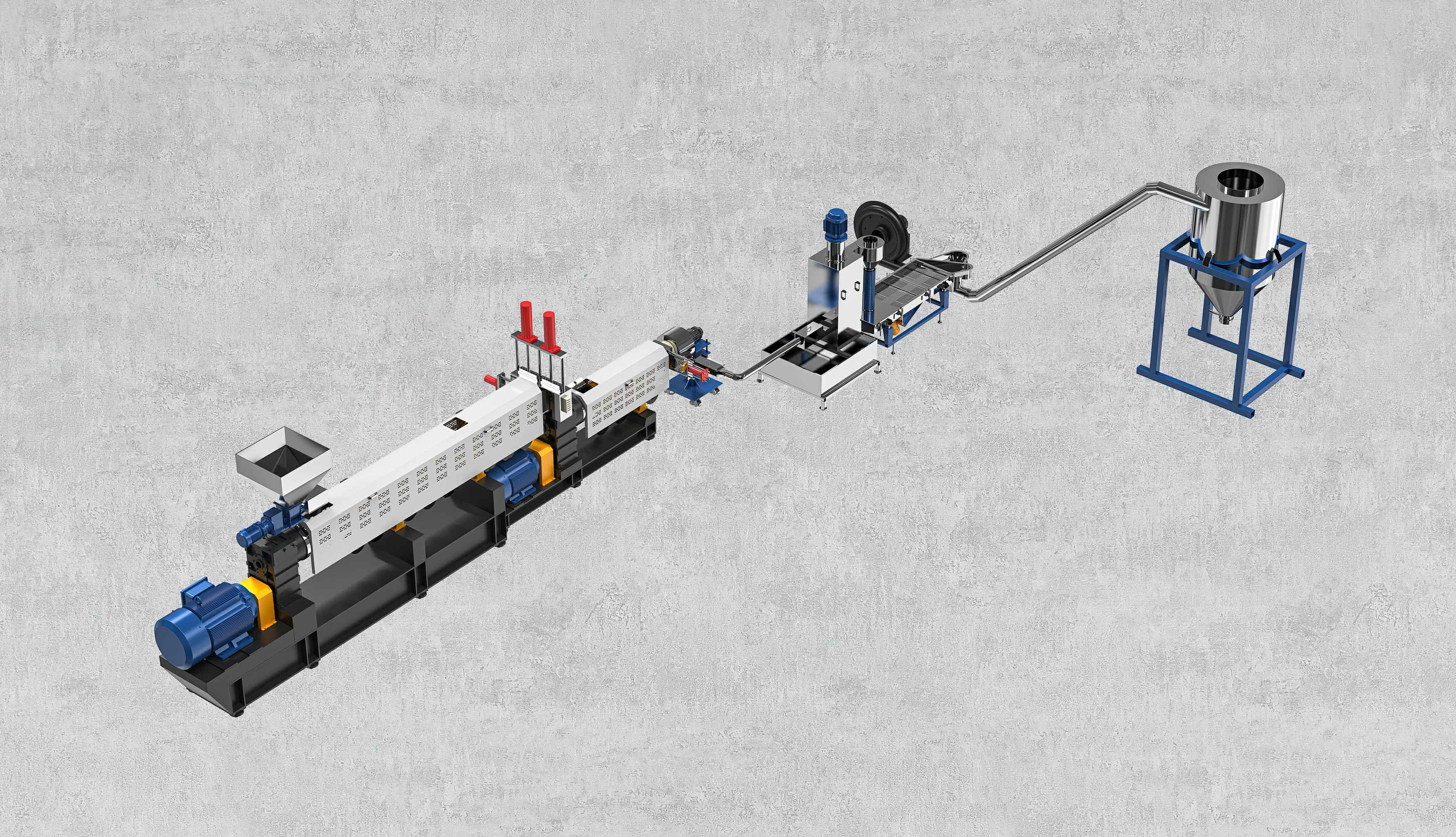 1.主喂料機(jī) | 2.單螺桿擠出機(jī) | 3.單螺桿造粒機(jī) | 4.水環(huán)熱切粒系統(tǒng) |