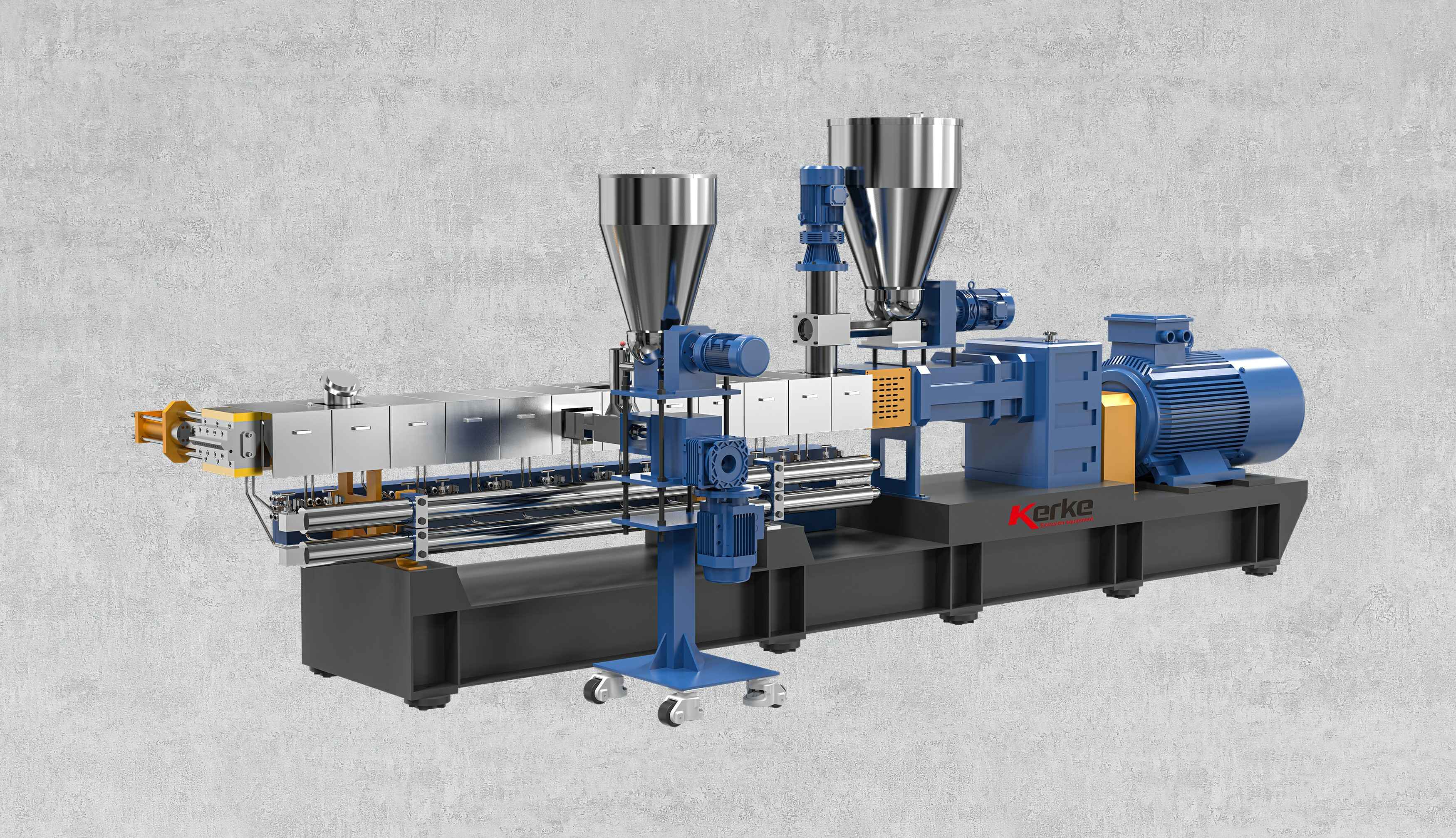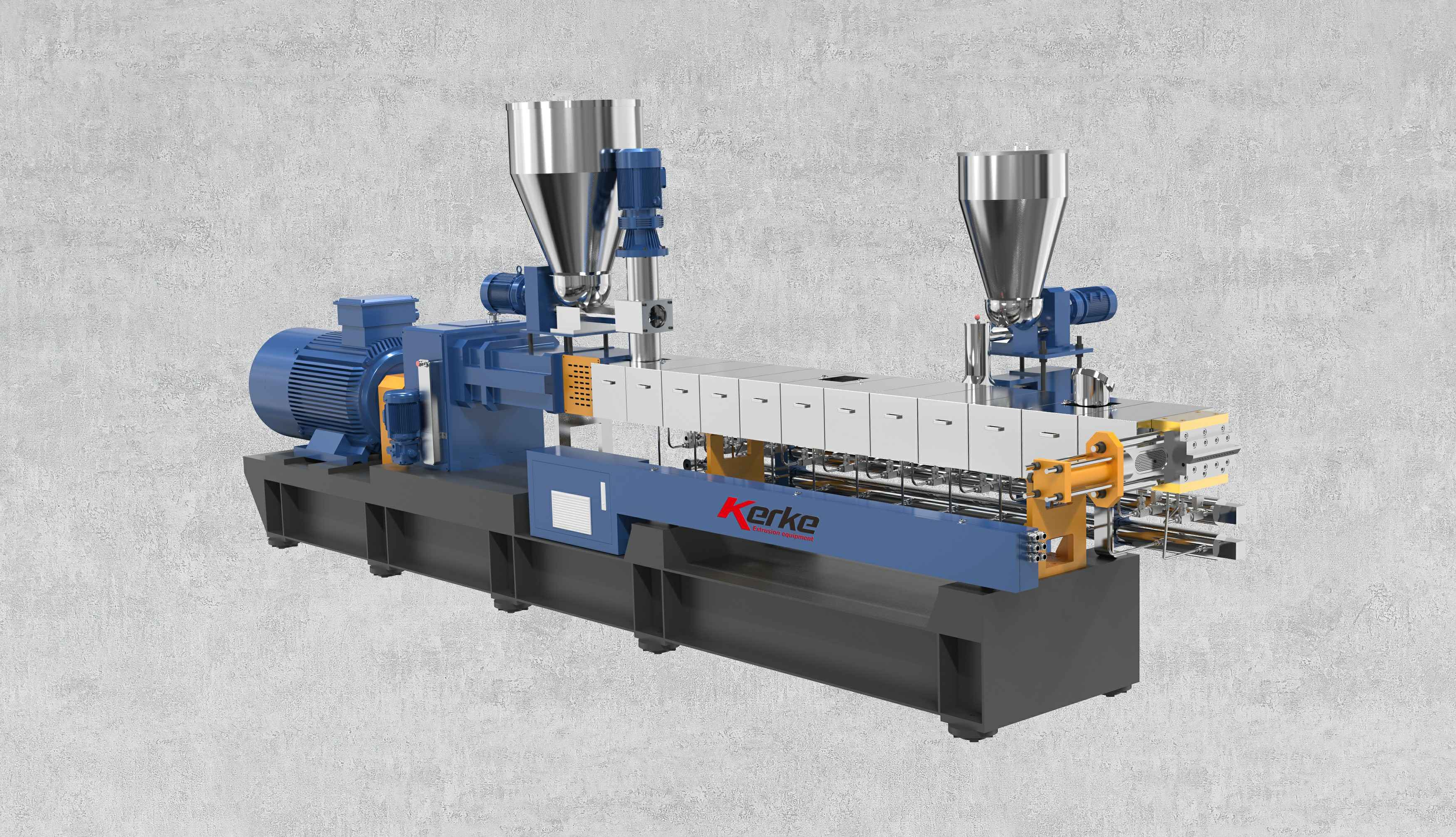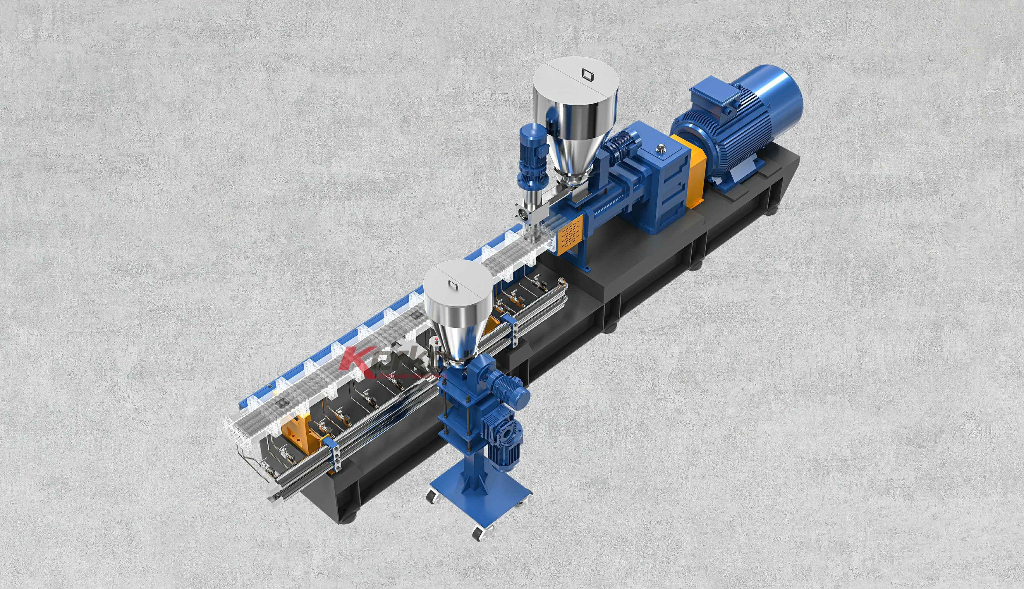 平行三螺桿擠出機是為更好的分散性和更大的產能而設計的。螺桿的自由容積增加了35%。分散質量明顯優于雙螺桿擠出機,可生產高濃色母、高填充母粒及透明母粒等。提高了物料質量,簡化了工序,降低了成本。具有以下特點: