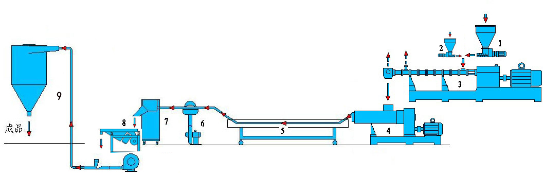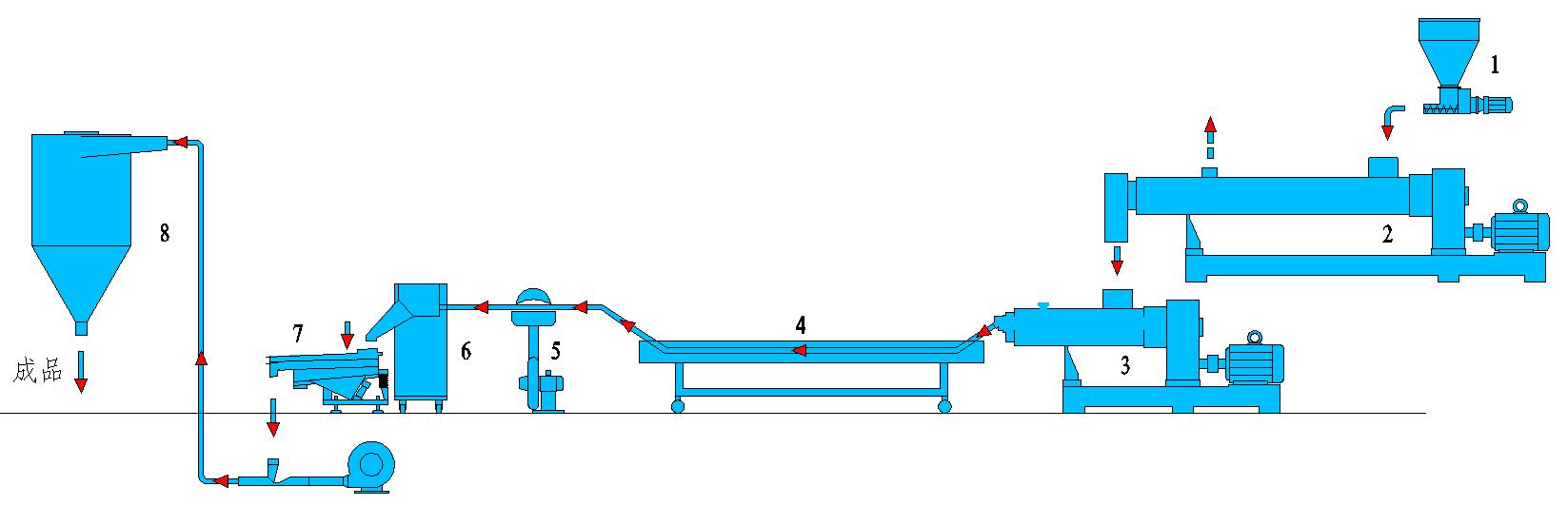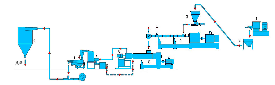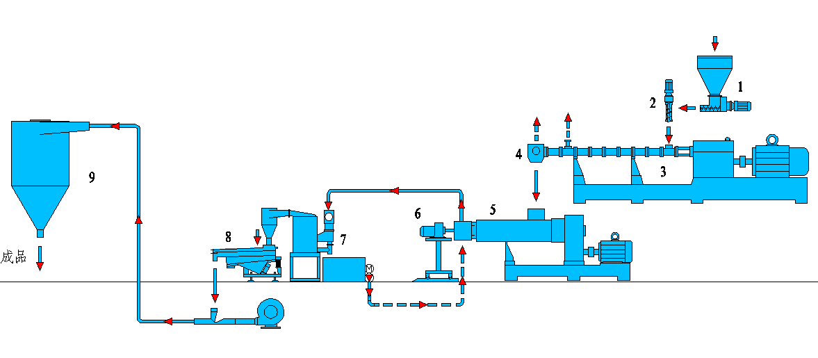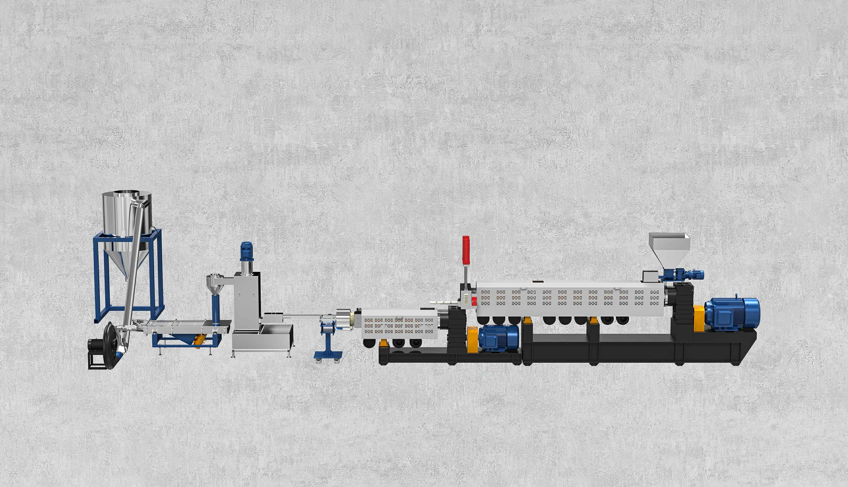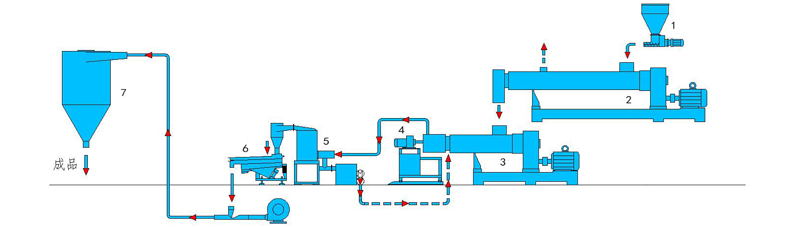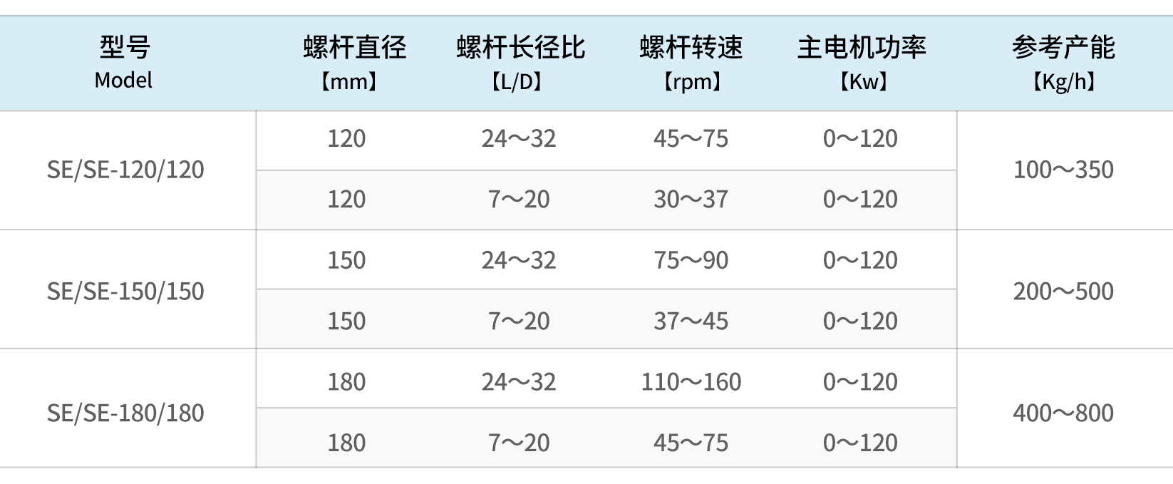 SE系列雙階單螺桿適用于水分含量高(10%左右的水分)、臟、輕的廢舊塑料回收造粒,出料穩定、均勻,產量高。設備可采用一字型或L型排列,設備布置緊湊,節省占地空間,方便操作。上下階主機均配置加大型液壓換網器,能有效過濾雜質,換網不斷條,大大提高產量,而且成品顆粒結實飽滿、光澤度強。